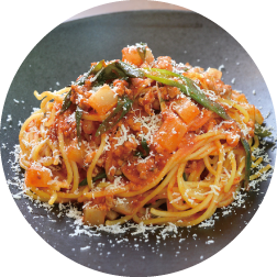 爽やかで深い味わいの豚肉のハーブマリネとオリジナルのトマトソースで和えた絶品生パスタです。