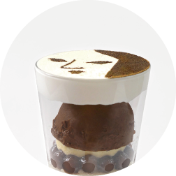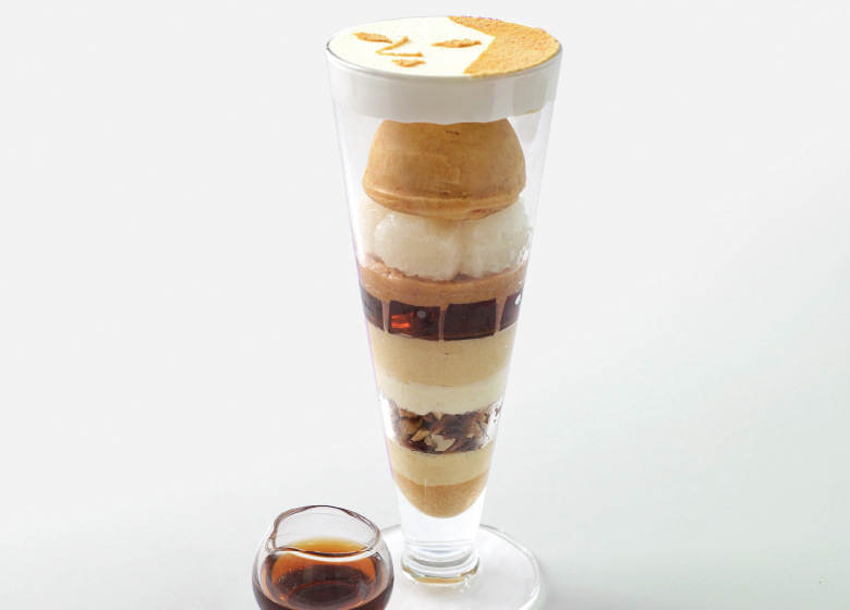 オリジナルの抹茶アイスクリームと抹茶ゼリー、食感が楽しいニッキクランチや抹茶クッキーが入っております。追い抹茶ソースは、より深い香りをお楽しみいただくため、甘さを控えめに仕上げております。